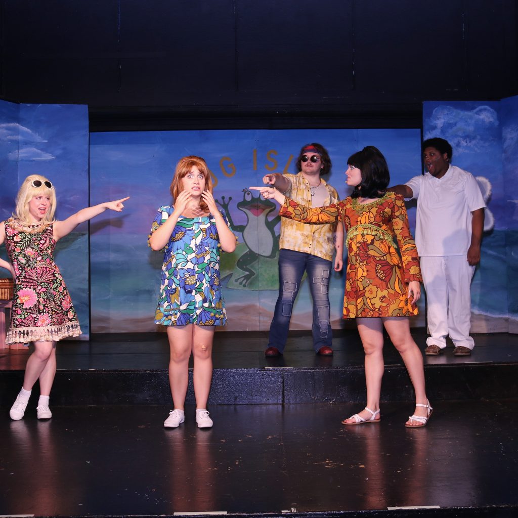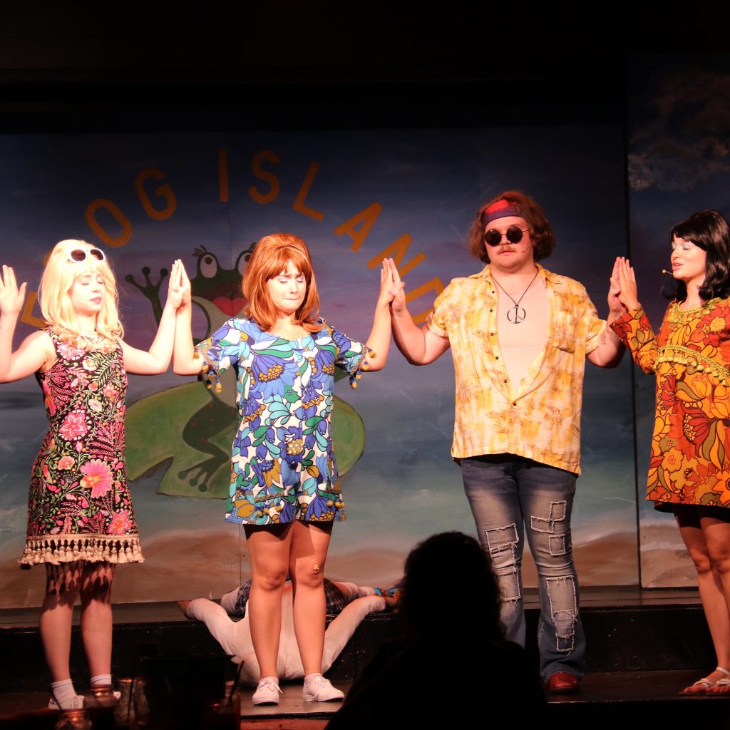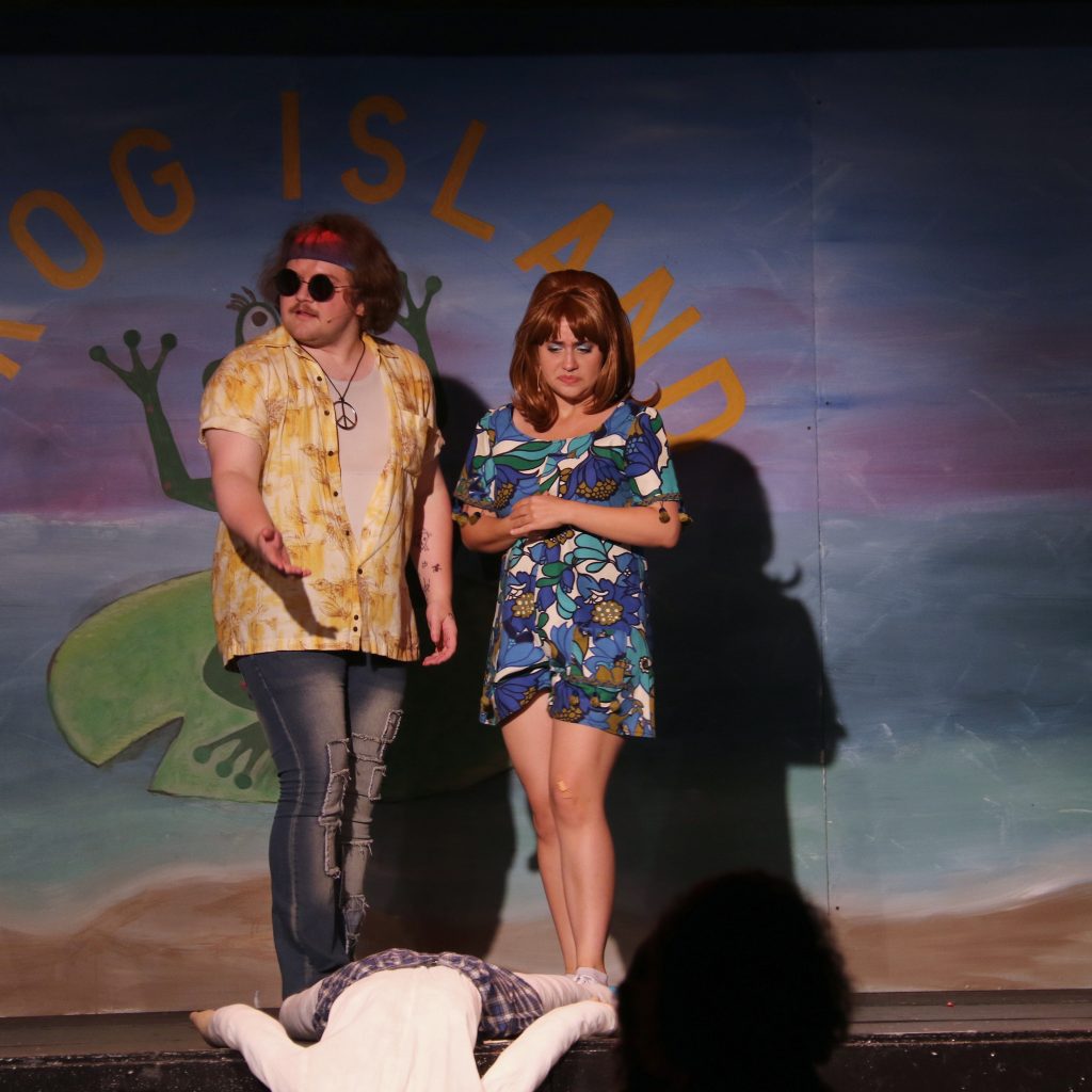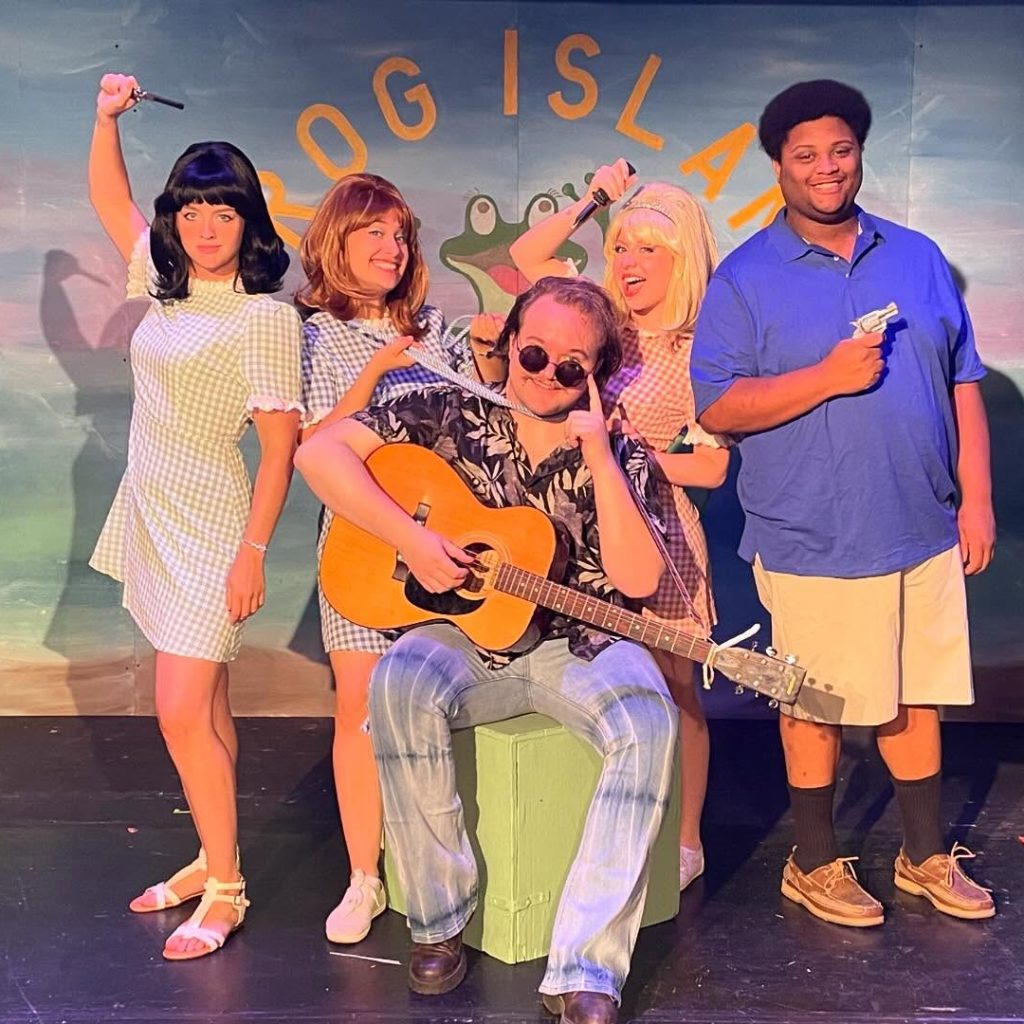 “STORY OF THE PLAY:  It’s a 1960s beach bop on Frog Island; the friendships are strong, the volleyball is competitive, and the cheese whiz is plentiful. Everything is just perfect until someone ends up missing…Or dead! So grab your bikini and join us for some interactive fun. Oh, one more thing, don’t forget your beach blanket!”